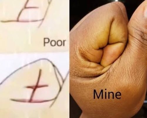 Palmistry, or chiromancy, is the ancient practice of reading the lines and shapes on the hands to reveal a person’s character or future. Many cultures believe that specific palm markings can indicate wealth, luck, or personality traits.One example often shared in palmistry illustrations is a crossed line near the thumb. In some interpretations, this marking is linked to financial struggles and labeled as “Poor.”Though palmistry lacks scientific support, it remains a popular form of spiritual insight and self-reflection around the world.